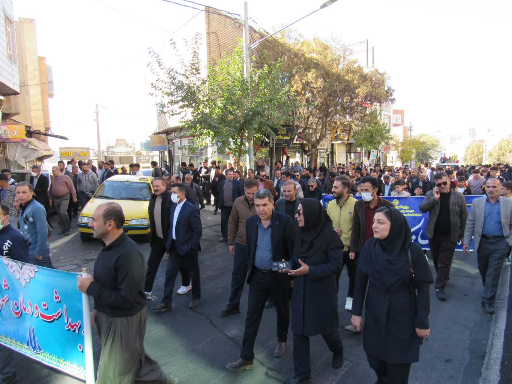 به گزارش روابط عمومی شبکه بهداشت ودرمان شهرستان سقز ؛مدیر و کارکنان شبکه بهداشت و درمان این شهرستان همگام با سراسر کشور و سایر اقشار مردم سقز در روزسه شنبه 13 آبان 1404 با حضور پرشور در راهپیمایی روز ملی مبارزه با استکبار جهانی شرکت کردند و ضمن محکوم کردن جنایات آمریکا ورژیم صهیونیستی ، با مقام معظم رهبری ( مدظله ) و آرمان های انقلاب اسلامی تجدید میثاق نمودند.