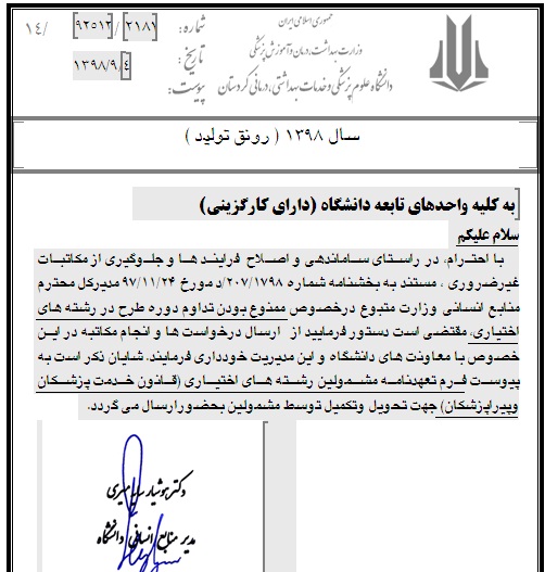 برای مشاهده بخشنامه تداوم اینجا کلیک کنید.