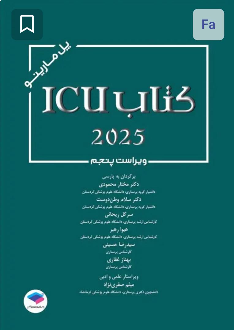 کتاب ارزشمند و تخصصی(ICU پل مارینو) با تلاش جمعی از متخصصان حوزه سلامت به زبان فارسی ترجمه شد. در میان مترجمان این اثر علمی، نام سه نفر از همکاران دلسوز و پرتلاش شبکه بهداشت ودرمان شهرستان ، آقایان سید رضا حسینی ،هیوا رهبرو خانم سرگل ریحانی، به چشم میخورد که با همکاری سایر اعضای تیم ترجمه، سهمی مهم در این پروژه علمی ایفا کردند.