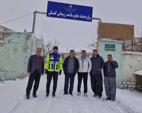 بازدید مدیر شبکه بهداشت کامیاران از پایگاه اورژانس گشکی در روز جمعه هم زمان با بارش برف